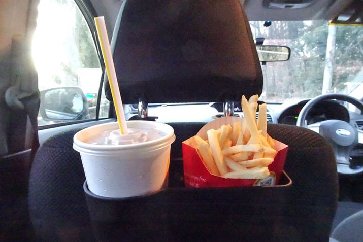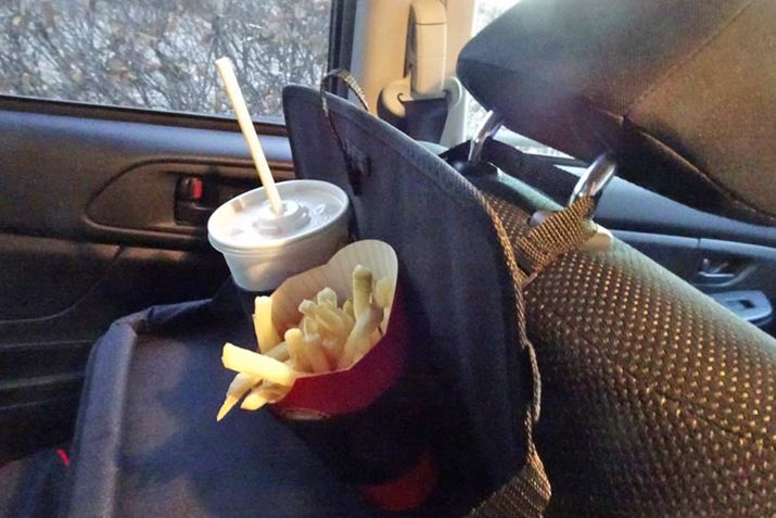 今どきのクルマは後席まわりにもドリンクホルダー機能が充実していますが、ハンバーガーチェーン店のフライドポテトの置き場にはちょっと困るもの。そんな悩みを解消してくれます。