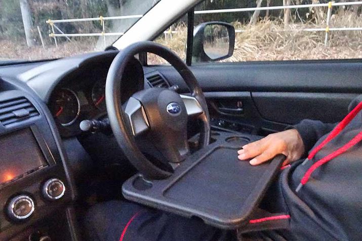 遅筆により、クルマでの移動中も原稿の締め切りに追われることがしばしばありますが、そんな私に最高のトレイといえるのがこれ!