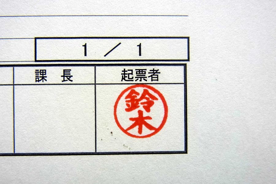 佐藤、鈴木、高橋のように社内に同じ苗字の方が数人いると、どの佐藤さんの押印かわからないことがありますよね。苗字だけでなく名前の1文字が小さく入っていれば、誰の押印かわかりやすくなります(フルネーム印の作成も可能です)。