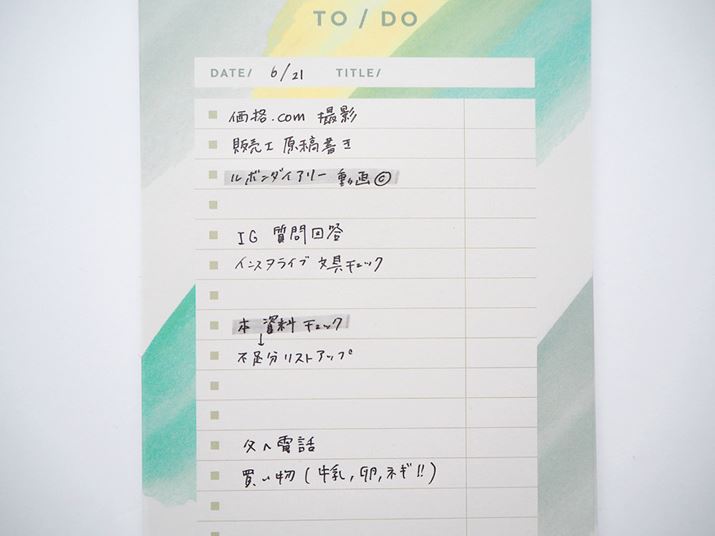 グレーマーカーを使った「ToDoリスト」の例。文字の上に引いても、元々書いてあった文字が潰れず、後から見直しやすい
