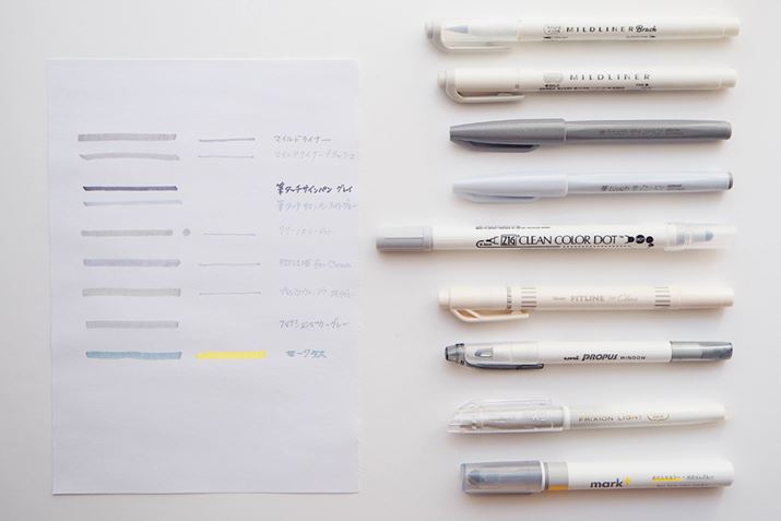 「グレーマーカー」とひと口に言っても、製品ごとに色や濃さに特徴がある