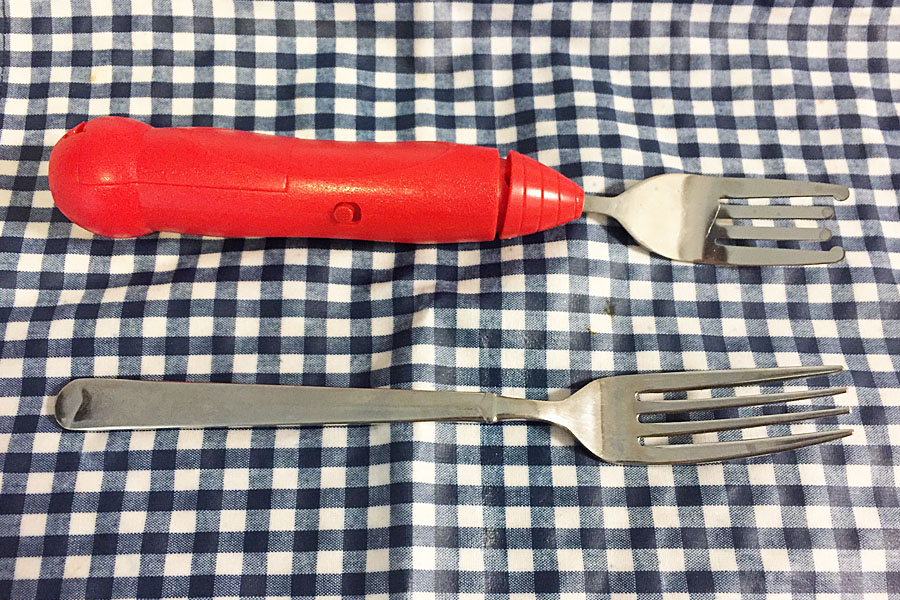 普通のフォークと比べると、「Twirling Spaghetti Fork」は持ち手が大きめですね〜