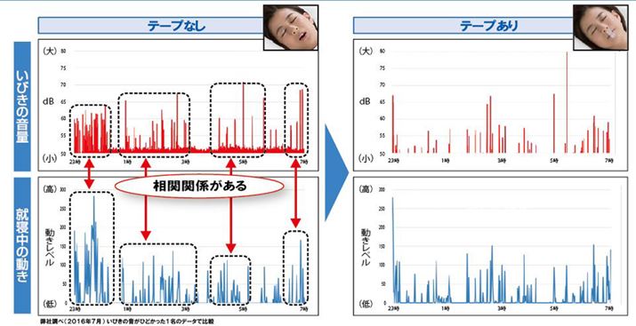 でも、そもそもなぜ鼻呼吸になると、安眠を手に入れられるのでしょうか。ここに、小林製薬が調べた実験結果があります。