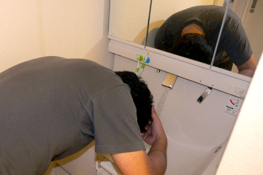 普通、寝ぐせ直しといったら、洗面所に頭を突っ込んでジャブジャブ水をぶっかけて…とかだと思いますが、ボクのハード寝ぐせはそれくらいじゃおさまらない!