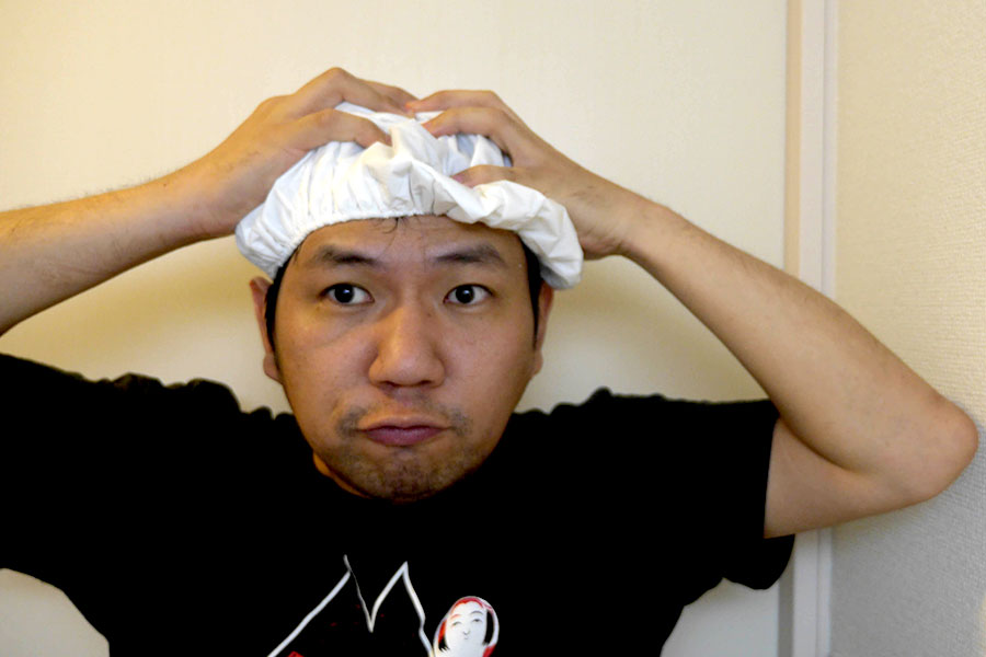 思い切ってかぶる! そんで頭全体をマッサージ! うわっ冷たい
