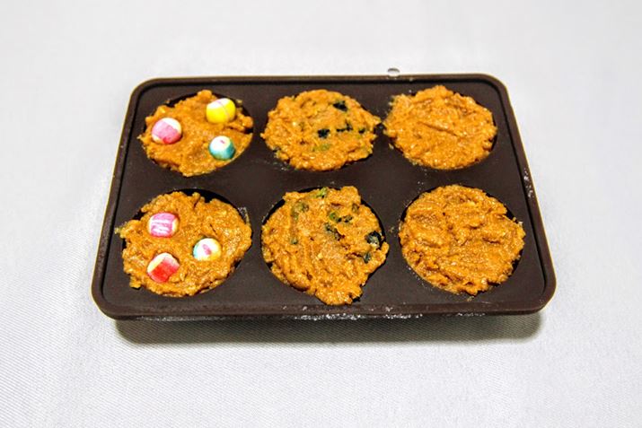 さあ、ここで「みそ玉がポン」の登場です! 混ぜ込んだ材料を、容器のくぼみ部分に詰め込みます。くぼみ1つで1食分なので、分量を量る必要がありません。便利です!