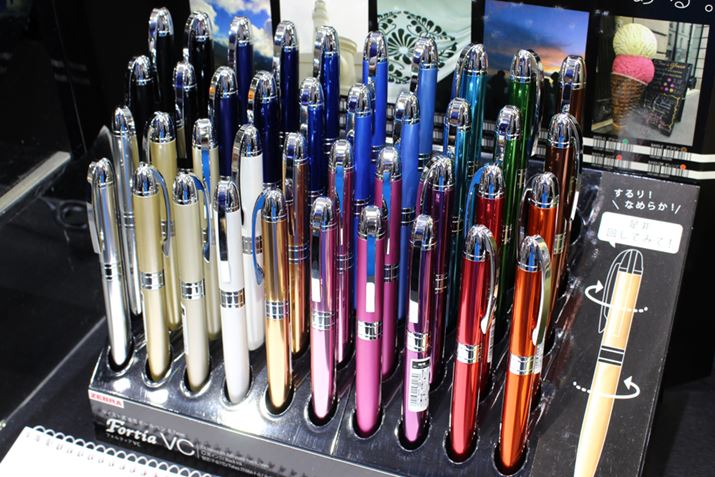 ひねって芯を出すツイスト式の油性ボールペン0.7mm。ボディは高級感のあるメタリック素材で、カラーは20色もラインアップされる。この風格で1本1,080円とお手ごろ価格なのがうれしい
