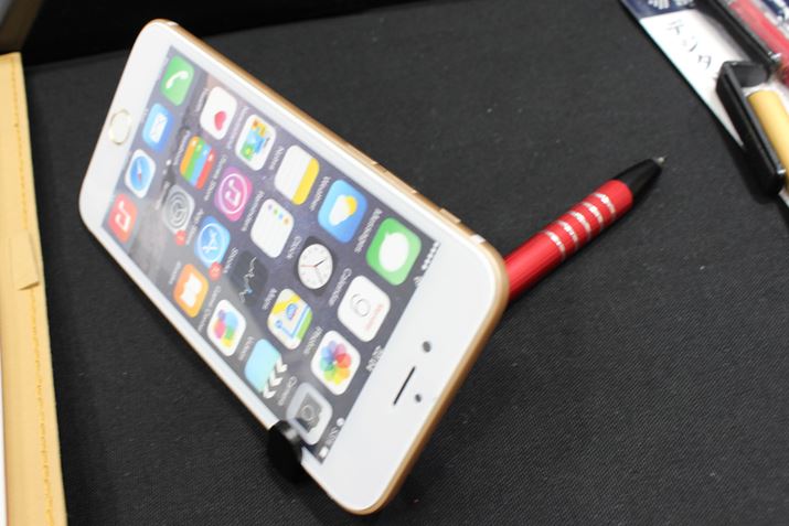 ボールペンにスタイラスペン、スマホスタンド、液晶クリーナーが付いた1本4役の筆記具。フリック部分に搭載された液晶クリーナーにはフェルト生地を採用する