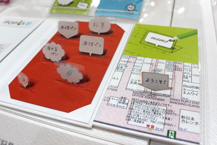 本や手帳に挟んでページを閉じても開くたびに何度も立ち上がる「POPit」シリーズの新作。フキダシや矢印のデザインを採用し、中にメモが手書きできる仕様になっている