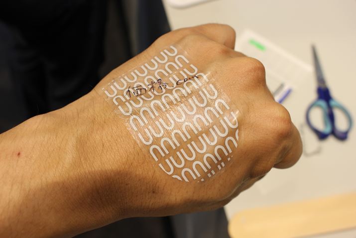 こちらは、「wemo」シリーズの肌に直接貼れるシールタイプ。肌用感圧型転写シールの技術を応用し、水なしでも貼れて、水に濡れてもはがれない。上記のシリコンバンドタイプとシールタイプを合体させたモデルもあり