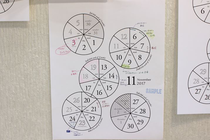 1週間を円グラフのように7等分することで、1か月のなかの1日の大きさを感じさせてくれるアーティスティックなカレンダー。設計図のようなデザインで、ラフに予定を書いても雰囲気のある仕上がりになる