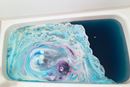 お湯自体の色は少し透明度のある深めのブルー。ラメは写真ではなかなか伝わりにくいのですが、かなりの量が入っています。