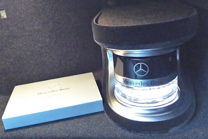 現行型メルセデスベンツの多くは、グローブボックス内にフレグランスを設置する機能を備え、空調とうまく混じり合って高級感のある車内の空気を演出しています。これをそのまま流用するのもアリかも