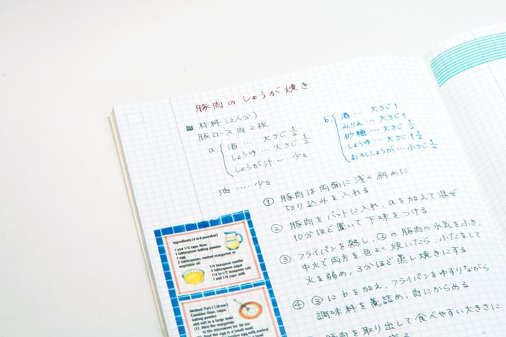 「IDEA」は、グリッド罫のガイドで書きやすいメモ帳。写真のような料理のレシピや、日記、ToDoリストなど、自由な発想で好きなように書き込める。CamiApp対応でクラウド保存も可能