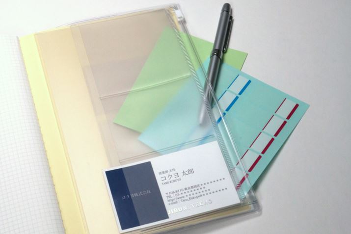 「ファスナーケース」は「ジブン手帳」のカバーの内側ポケットに挿し込み、チケットやカード、シールなどの小物をいっしょに持ち歩ける。同製品もA5スリム用(756円)、B6スリム用(734円)がそろう