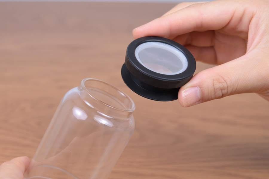 質感のある陶磁器製のフタも付いており、サーバーの上に乗せればオシャレ度がさらにアップ。抽出が終わったらこの状態のまま冷蔵庫に保管できる