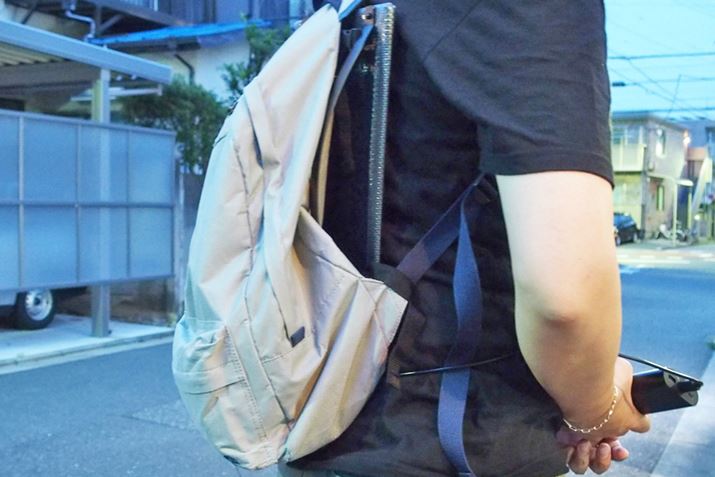 こんな感じでリュックサックに装着します。サイズ感が調度よいので背中に当たる部分に違和感がなく、外からは目立たなくなっています