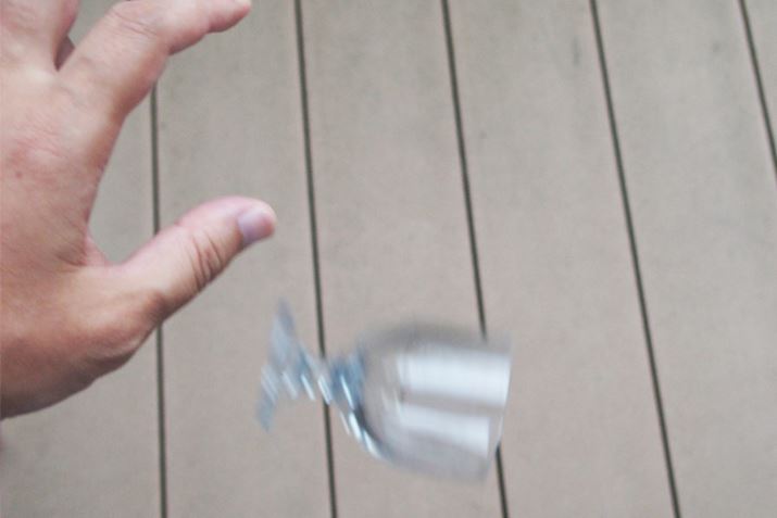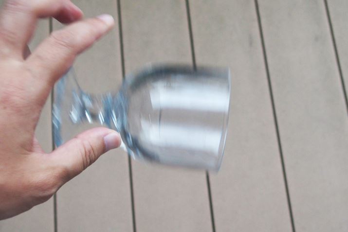 で、とりあえず、テーブルの高さから落下させてみました。ガラスなら割れてしまう可能性が高い高さですが、「さすがプラキラリビングだ。なんともないぜ!」って感じです。