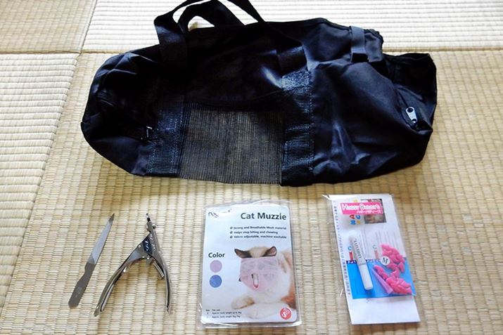 ちなみに、このバッグに猫1号も入れようとしたのですが、暴れてしまいました……。猫の性格によるものだと思います。1号の爪切りやネイルキャップ装着は、これまでどおり寝起きのときを狙ってやることにしました。