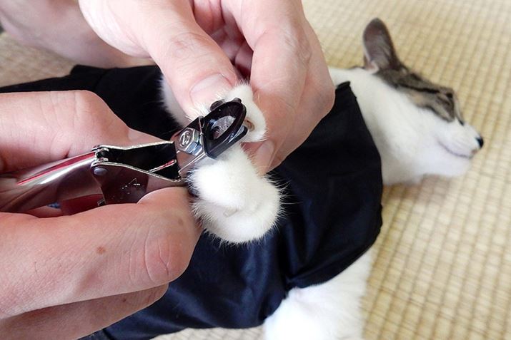 仰向けにすると切りやすそう。手足をばたつかせることもなく、本当におとなしくなるので助かる。