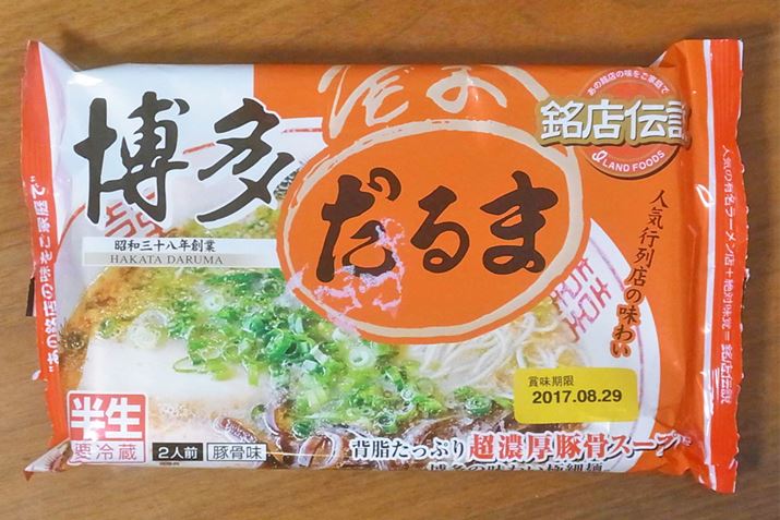 それでは実際に湯切りしてみましょう。今回は、「博多だるま」のラーメンをいただきます。濃厚スープが特徴で博多を代表する人気店。筆者が博多で大好きなラーメン店の1つです
