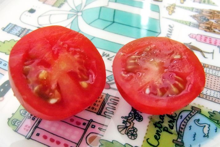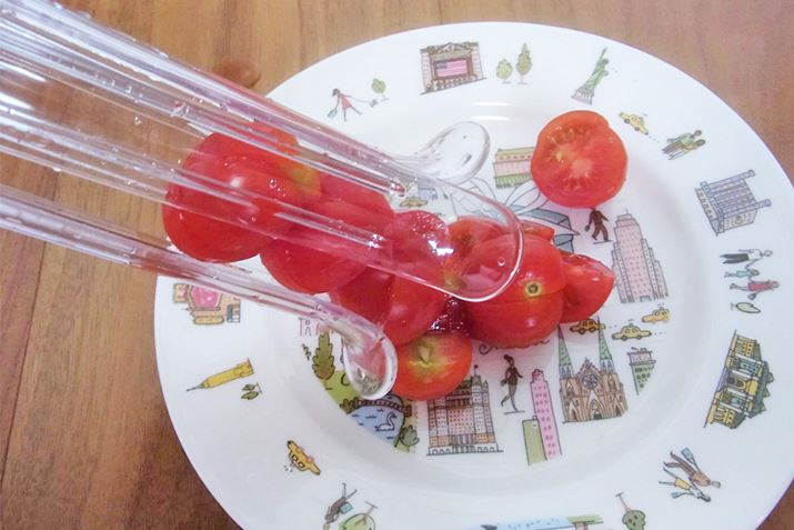 カットしたプチトマトは、本体を逆さまにして取り出します。おいしそうですね♪