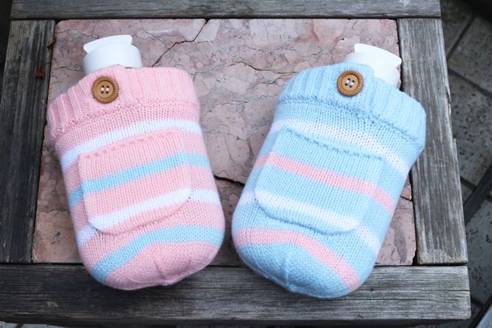 カラーは2色。ニット素材のカバーは暑苦しい素材ではないので、湯たんぽ風に使うのはもちろん、冷たい飲み物の水滴防止にもよさそう