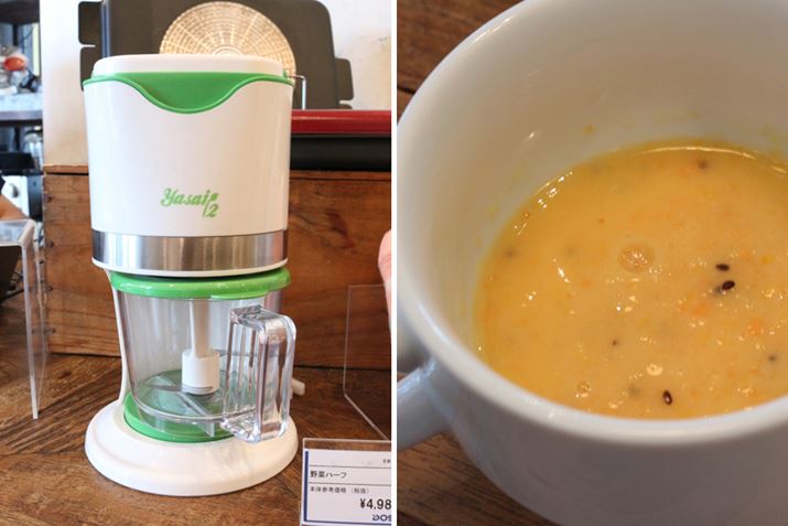 「野菜ハーフ」で作った野菜ジュースを試食したところ。しゃきしゃきした食感がフレッシュでおいしい。意外とありかも