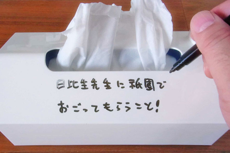 筆者が購入したのは、イケックス工業の雑貨ブランド「SOLCION」から販売されている「MEMORU(メモル)ティッシュケース」。ティッシュケースながら、ホワイトボードのように繰り返し文字が書けるのがポイント。ボードマーカーもセットになっているので、テレビ観賞中はもちろん電話中でも、とっさに必要な事柄をメモできちゃいます。