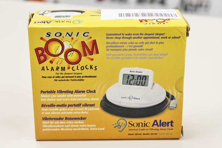 これは「ソニックシェーカー」っていう目覚まし時計。パッケージに書いてある「SONIC BOOM」って言葉が某ゲームのキャラクターの必殺技と同じ名前だが…あんなんされたら死んじゃうわ! と思ったけど違うみたいだから安心。