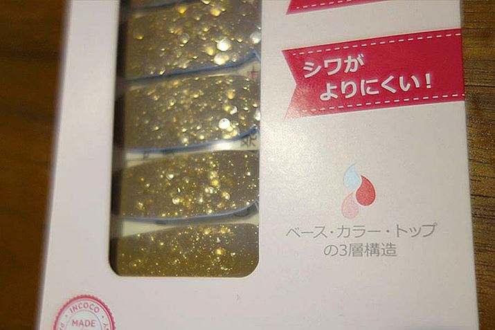 シール状に薄く仕上げたマニキュアを、乾燥を防ぐ2枚のシールで挟んでいるようですね
