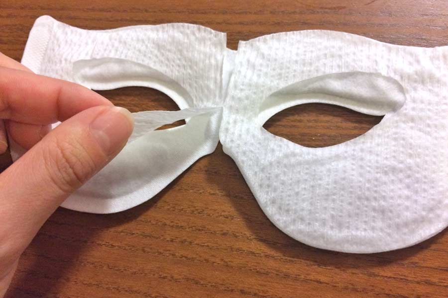 従来のアイマスクといえば、目をすべて覆ってしまうタイプが一般的。しかし、これには目の部分に穴が開いており、アイマスクをしながら「見る」ことが可能になったのです! そう、目を温めて癒やしながらも、ほかのこともできちゃうんですよ〜♪ さっそく中を見てみましょう。
