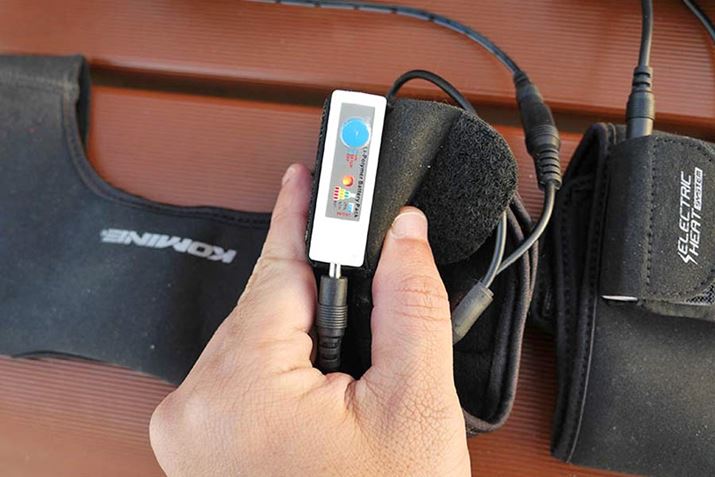 足首のあたりにあるバッテリーから給電して温か〜くなってくれるステキなアイテム。温かさは3段階に調節できます