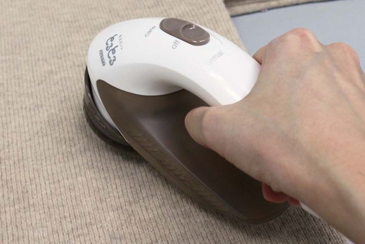 「KC-NW77」を使って、身のまわりにあるセーターなどの毛玉を一掃してみました。