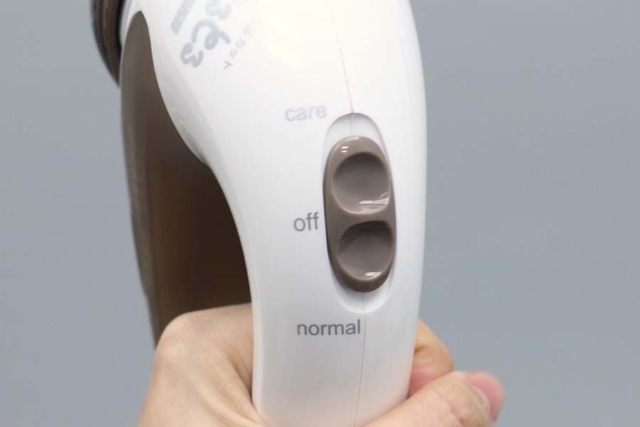操作はスライド式。ロック機能はなく、本体が充電されていればコードレスでも電源が入るので、誤操作には注意しましょう