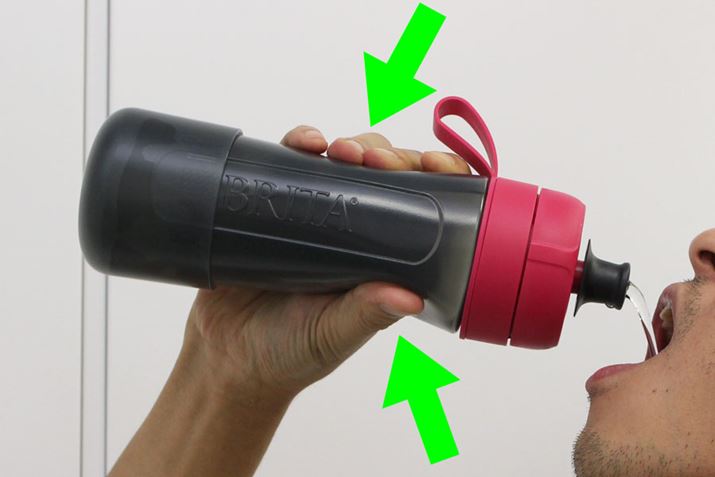 従来のfill&goの場合、水を飲むときには本体を傾けて吸引しないといけなかったのが少々難点でしたが、fill&go Activeはやわらかいボトルを指で押せば、中の水を飲めるようになりました。水を飲むときに本体を極端に傾けたり、思いっきり吸い込んだりしなくてもよいので、使い勝手がかなり改良されています。