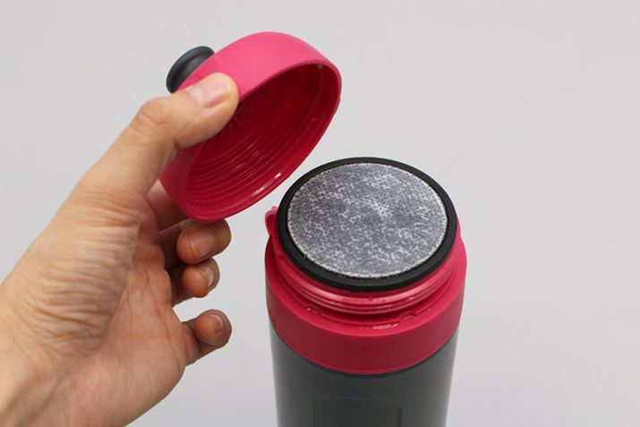 飲み口を外すと、すぐその下に独自のろ過フィルター「マイクロディスク カートリッジ」が装備されています。ボトルの中に入れた水がここを通ってろ過される仕組み