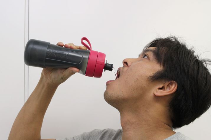 実際にfill&go Activeでろ過しながら水を飲む様子。和牛の水田さんは「体にかけたいくらいおいしい」と絶賛