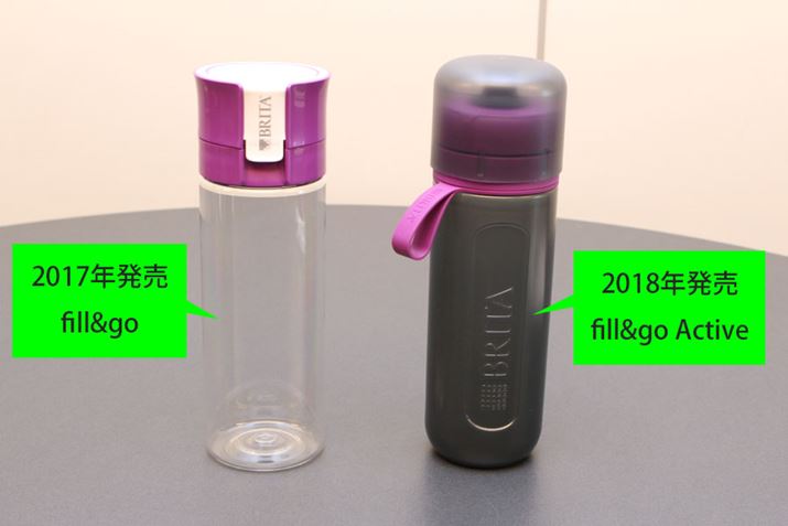 従来のfill&goと比べてみましょう。新しいfill&go Activeのほうが少しだけ大きく見えるかもしれませんが、最大注水量はどちらも0.6L