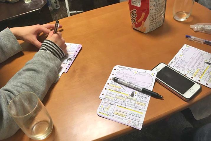 一緒に書いていく時間もなんだか懐かしくっておもしろいうえに、出てきた回答から共通の話題を探したり、いろいろ突っ込んで聞いてみたりと…、とにかく話の話題が出やすくなるので、仲良くなるきっかけにはぴったりです!