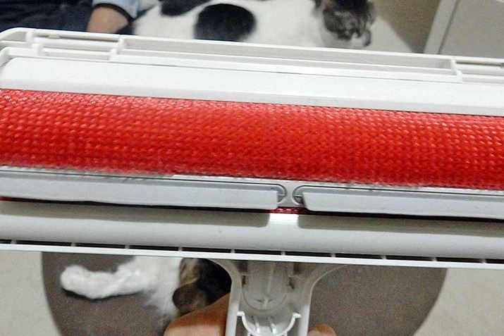 ぱくぱくローラーは押したり引いたりして使うのですが、往復させるたびにゴムの弁が行ったり来たりして毛を内部に引き込みます。うまいことできてるなあと感心する仕組み。
