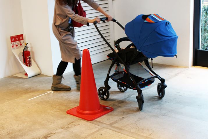 まずは、13.8cmのタイヤ径のベビーカーを押してみました(下の動画参照)。座面が上下に激しく揺れ、押している筆者にも衝撃が伝わってきます。これだけ衝撃があるのは、親としてはかなり不安。