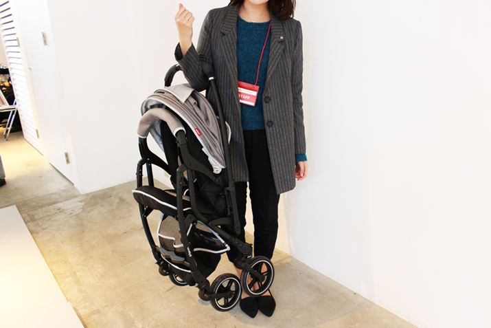 ベビーカーに求められるのは、走行性のよさだけではありません。Runfee RA8には、ママ思いの便利な機能や工夫がたくさん施されています。たとえば、ベビーカーの開閉。収納時はもちろん、公共の交通機関を利用したり、階段の上り下りでは折りたたみが必要。さらに、赤ちゃんを抱きかかえたまま開閉することも多く、スムーズさが問われます。Runfee RA8は、ハンドル部にあるロックを解除し、ハンドルを持ったまま本体を前後に動かすだけで開閉可能(下の動画参照)。最初はうまくできないかもしれませんが、コツをつかめば簡単にできます。筆者も5回ほどトライしただけで、習得できました!