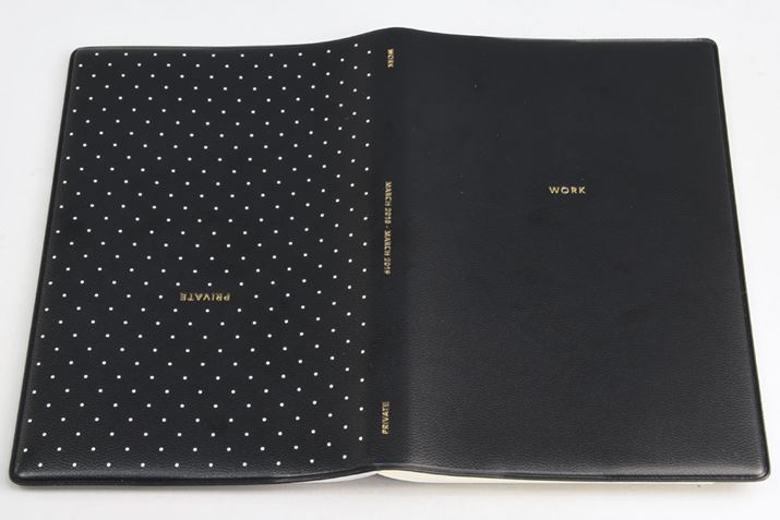 表表紙側からは仕事用の「WORK」が始まり、上下逆さまにして裏表紙側から開くとプライベート用「PRIVATE」のページが始まる