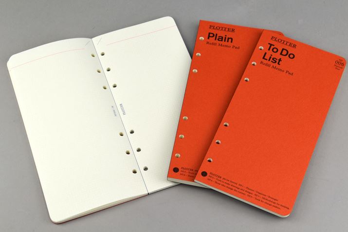 メモ系リフィルは、「メモパッド2mm方眼80枚」(左/税込540円)、「メモパッド無地80枚」(中央/税込540円)、「メモパッドToDoリスト50枚」(右/税込486円)などがそろう。単体でノート的に利用し、必要なものを切り取って「レザーバインダー」や「プロジェクトマネージャー」(後述)に移動できる