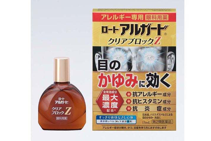 花粉症による目のかゆみを引き起こすのはヒスタミンなどのアレルギー誘発物質。その発生と放出を防ぎ、症状を緩和するのが抗アレルギー成分です。そして、ヒスタミンの働きを抑え、かゆみなどの症状をやわらげるのが抗ヒスタミン成分。多くの市販用目薬には抗アレルギー成分としてクロモグリク酸ナトリウム、抗ヒスタミン成分としてクロルフェニラミンマレイン酸塩が含まれています。また、抗炎症成分や角膜保護成分なども含まれています。