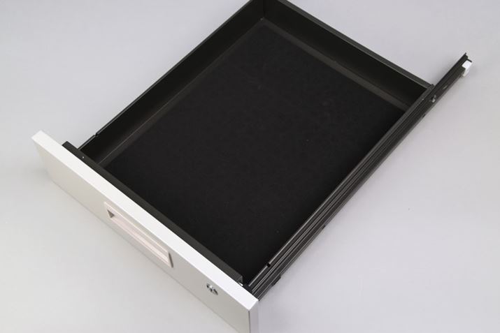 筆者のデスクは、一般的なオフィスデスク。ベースシートと引き出しの内壁の間に2〜3cmの隙間はできるが、気になるほどではない