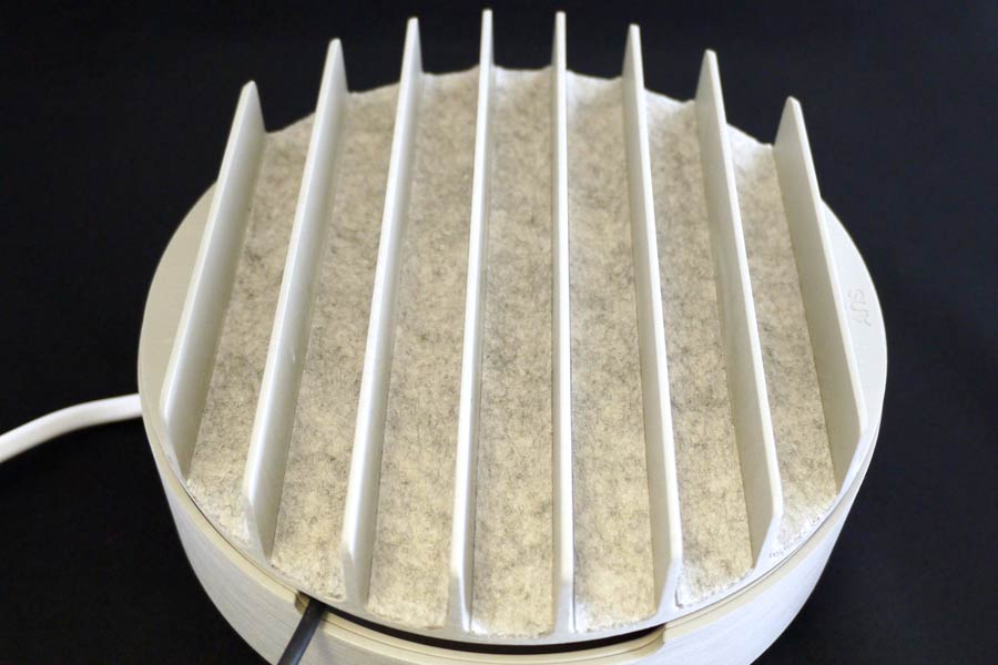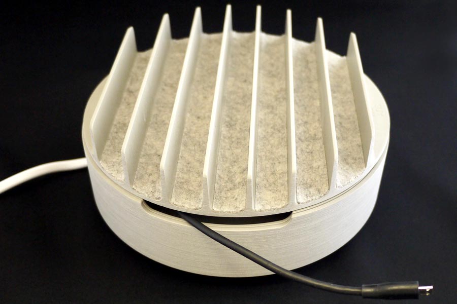 「COLONY」の大きさは幅190×高さ80×奥行190mmと、そこそこ大きめ。そして約890gとしっかりした重さがあります。カラーはテクスチャーホワイトとテクスチャーブラックの2種類。筆者はテクスチャーホワイトを購入しました。質感はマットなのですが、焼き物の器みたいでとてもおしゃれです。