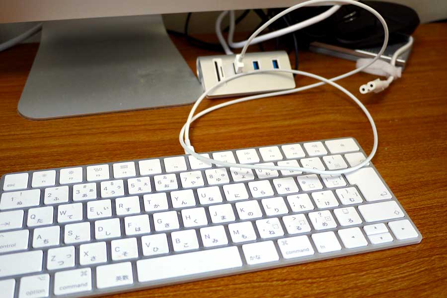 スマホなどのデジタル機器以外で筆者が特に気に入っている使い方は、ワイヤレスキーボードです。iMacのキーボードっておしゃれなんですけど、充電するときに、付属のケーブルを使うとかなり余ってしまってちょっと見苦しくないですか? そこで「COLONY」です。