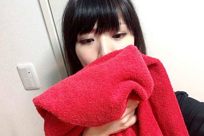ふわふわ度を顔などにすり付けてチェック! そうですねー、特に変わりはなく、いつもどおり「柔軟剤なしで洗った」感じ! でした。特にふわふわした、という感じはありません。